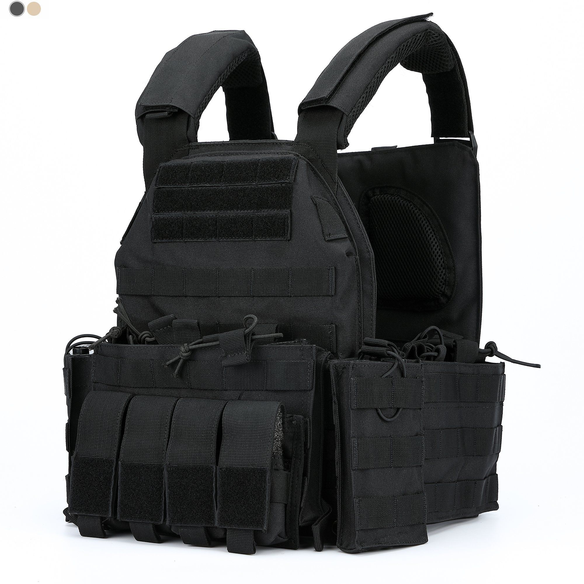 Die taktische Weste bietet seitlich insgesamt 4 open shingle Magazintaschen für 4 x M4 Magazine. Der Bauchbereich ist mit 4 Pistolenmagazintaschen versehen, die mit Klettverschluss verschlossen werden können. Diese Pistolentaschen decken zusätzlich 3 offene M4-Magazintaschen ab.