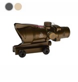 Das Typ ACOG Zielpunktvisier von Guerilla Optics mit funktionierender Fiber Optik besteht aus massivem Metall. Die Vergrößerung ist 1-fach und fix. Das Visier ist selbstverständlich von Hand in Höhe und Seite verstellbar.