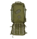 Molle-Aufnahmeschlaufen, 3 elastischen Schlaufen.1 kleine Hardcover-Fronttasche mit 2-Wege RV und Klettflauschpatch ca. 8 x 5 cm. 1 große Fronttasche mit 2-Wege RV, diversen Einschubtaschen und 1 Netztasche mit RV je 2 Kompressionsgurte seitlich, diverse Molle-Aufnahmeschlaufen vorne und seitlich