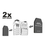 Jeder Träger kann eine ballistische Schutzplatte der größe Medium aufnehmen. Zwei Replika Platten aus dichtem Schaumstoff (hart, aber leicht) sind bereits im Lieferumfang enthalten. Im Brustbereich ist zudem ein Admin Panel integriert, das durch die Klettfläche das Anbringen von Taschen oder Patches erlaubt.