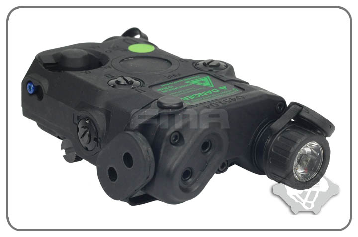 The light IR and laser module AN-PEQ15 of FMA in de r upgrade version with an integrated pointer and illuminator (IPIM) by means of CR123A batteries (not included) operated.