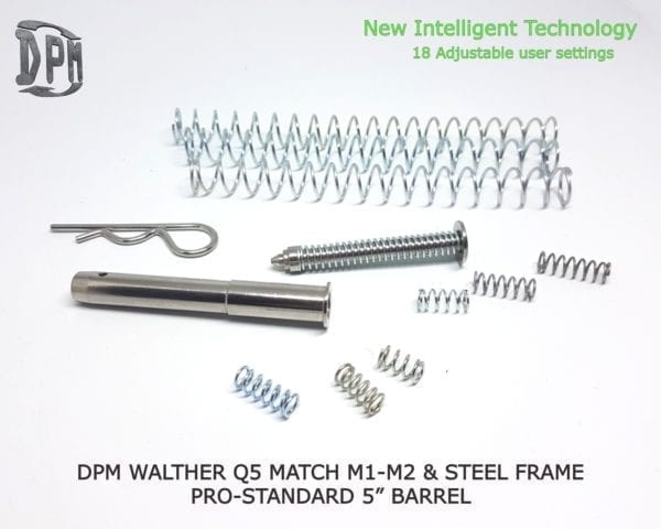 El sistema de retroceso DPM es un reemplazo directo de la varilla de retroceso estándar. El conjunto contiene un total de 3 resortes . Un resorte controla el movimiento de la corredera para que nunca golpee el marco. Los otros 2 resortes están diseñados para la adaptación individual del arma a las necesidades personales del tirador.