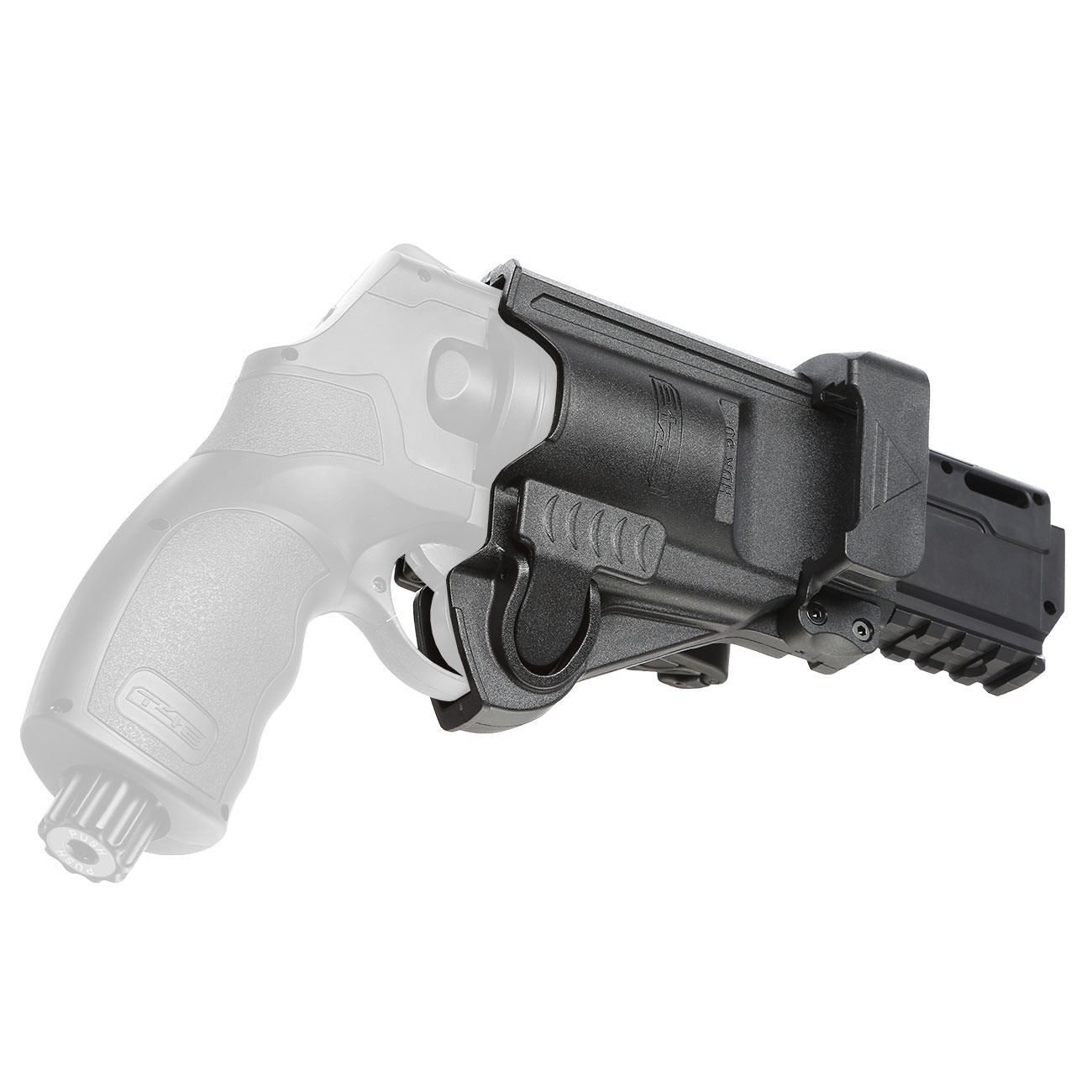 O coldre de cinto Umarex T4E TR 50 feito de polímero robusto foi especialmente projetado para o TR 50 Marker Gen.1 e Gen.2 nas versões de 7,50 e 11,0 Joules.